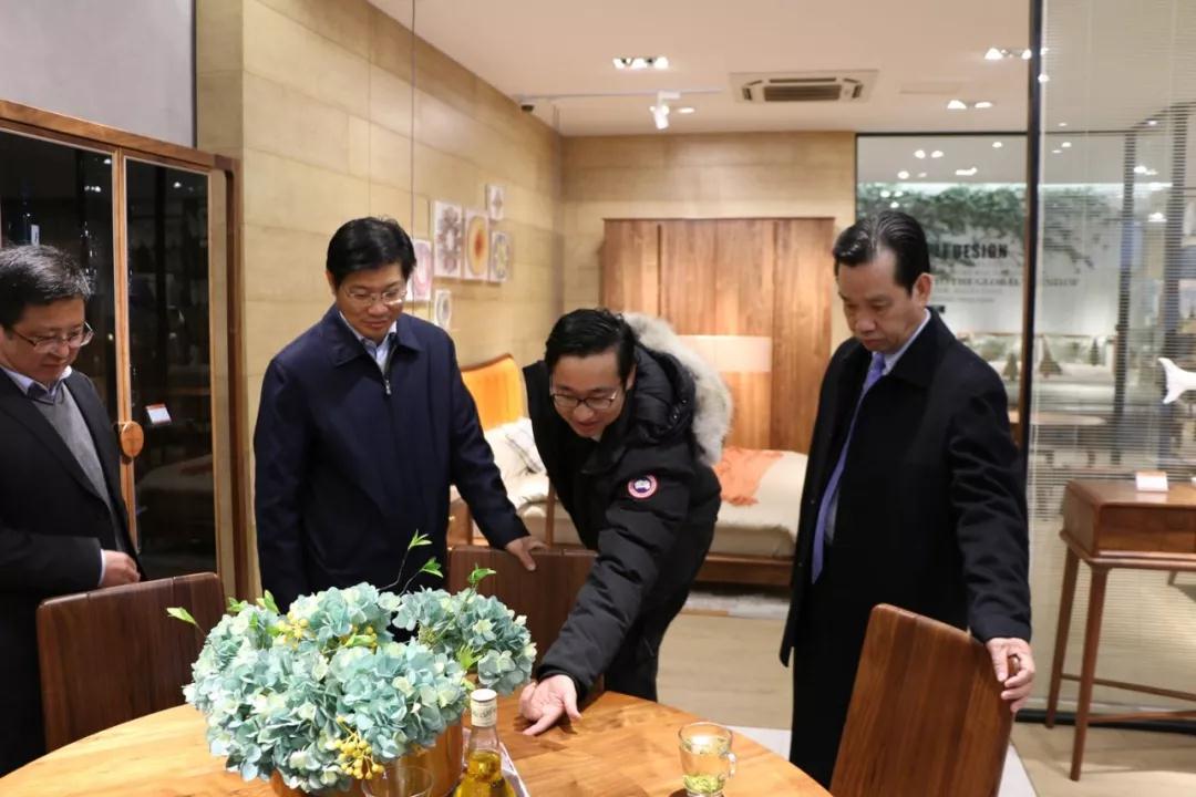 幹部長先後走訪莫霞實業家具生産(chǎn)車間、黨員活動中心和産(chǎn)品展示廳,希望莫霞繼續堅持以匠心精神推動傳統木藝産(chǎn)業轉型升級,不斷加大人才引進培養、校企合作幫(bāng)帶等工作。