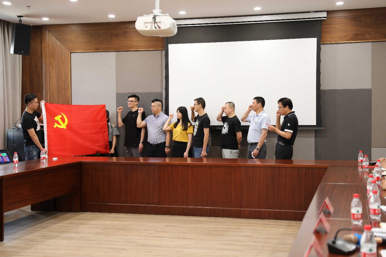 “我志願加入中國共産黨,擁護黨的綱領,遵守黨的章程,履行黨員義務……永不叛黨。”在譜拉歌世紅色CEO、黨委書記汪俊國的引領下,6名新黨員面向黨旗、莊嚴宣誓。