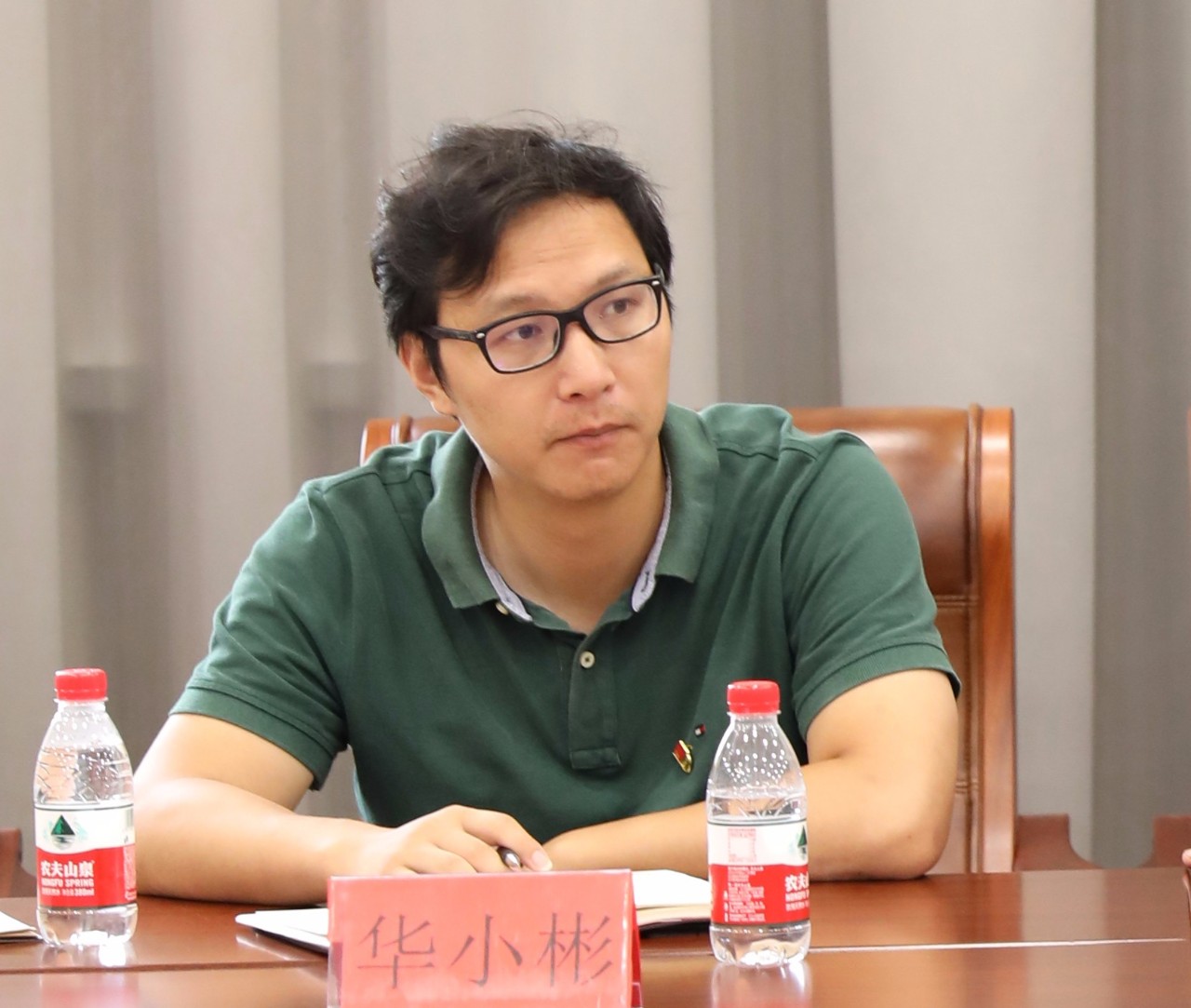 實地觀摩過後,兩個黨組織的全體黨員聚集一堂,開啓第二階段的議程,首先由德清縣委組織部部委會議成員、兩新工委副書記嚴峰緻歡迎辭,譜拉歌世黨委副書記、董事長兼總經理沈正發主持。