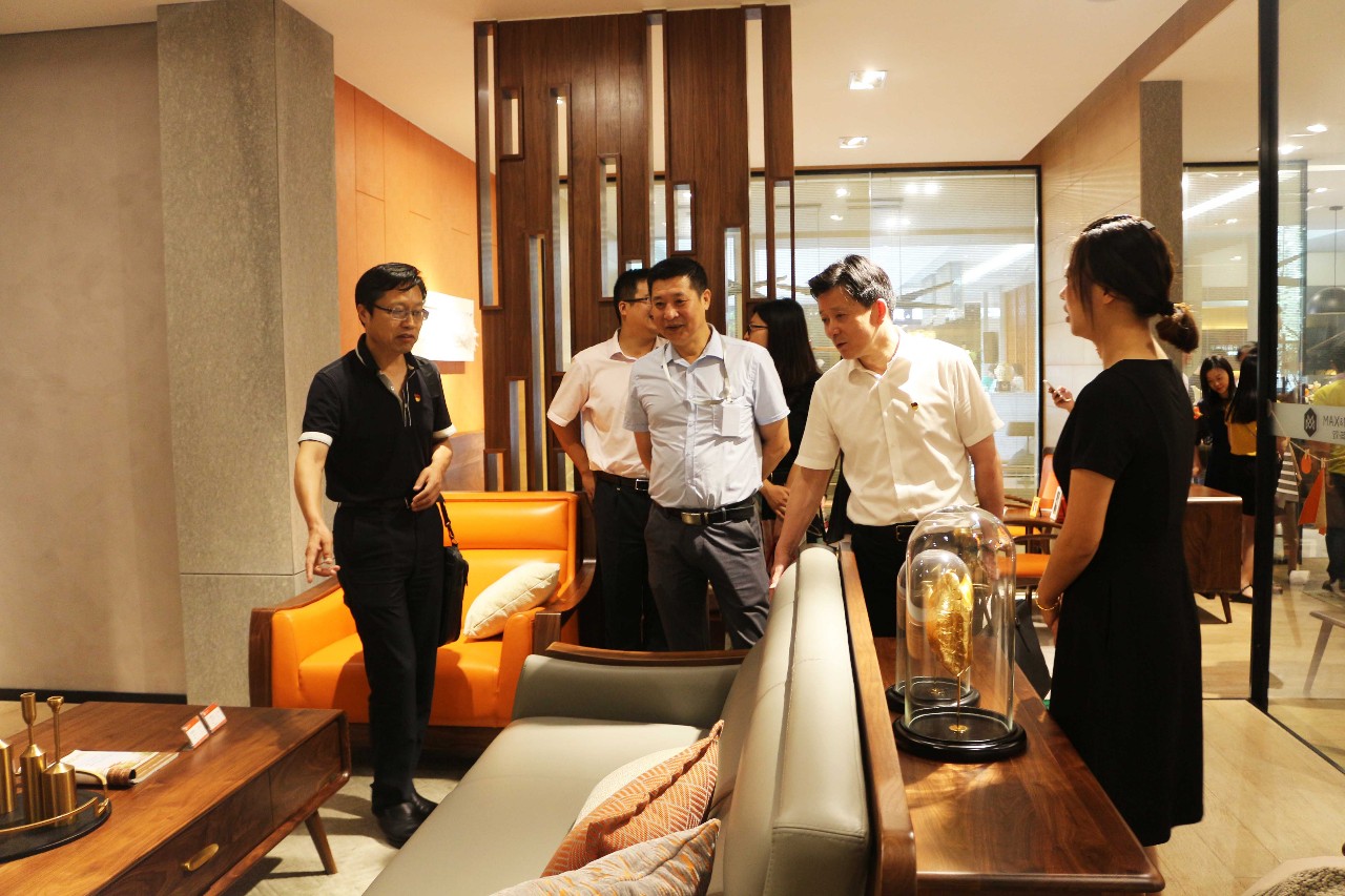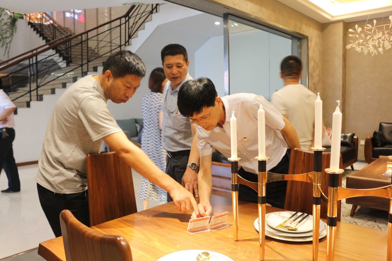 活動伊始,黨員們實地參觀瞭莫霞實業公司的産品展廳,通過一件件精緻高檔的家具産品,近距離感受莫霞人精益求精的工匠精神。