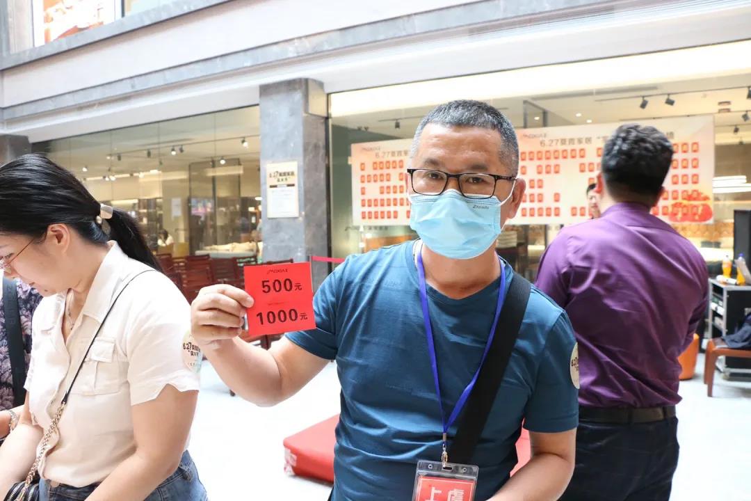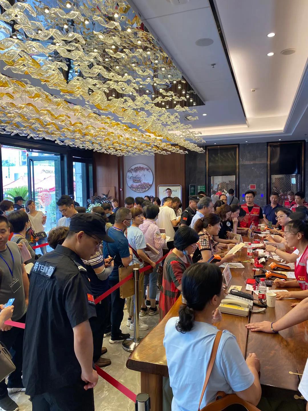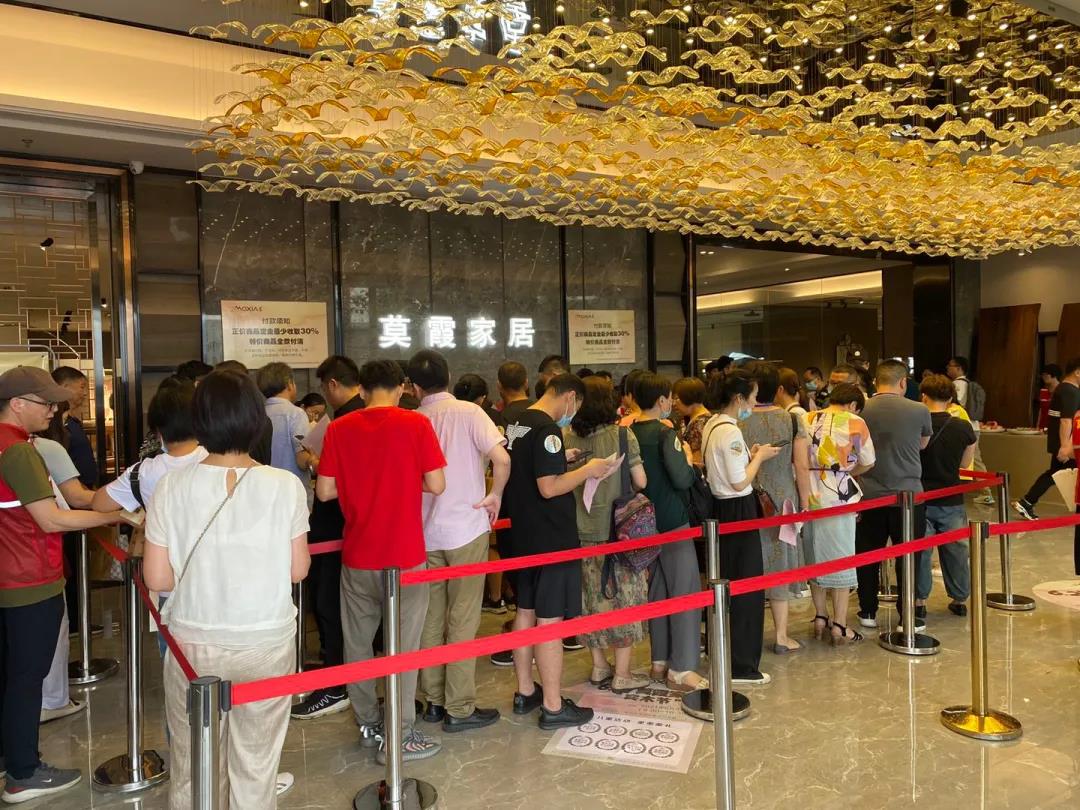 緊接著(zhe),驅車來到瞭(le)莫霞家居旗艦館。整個展廳,已經被我們熱情的顧客給擠爆場瞭(le),瘋狂的搶購活動已經開始瞭(le)。